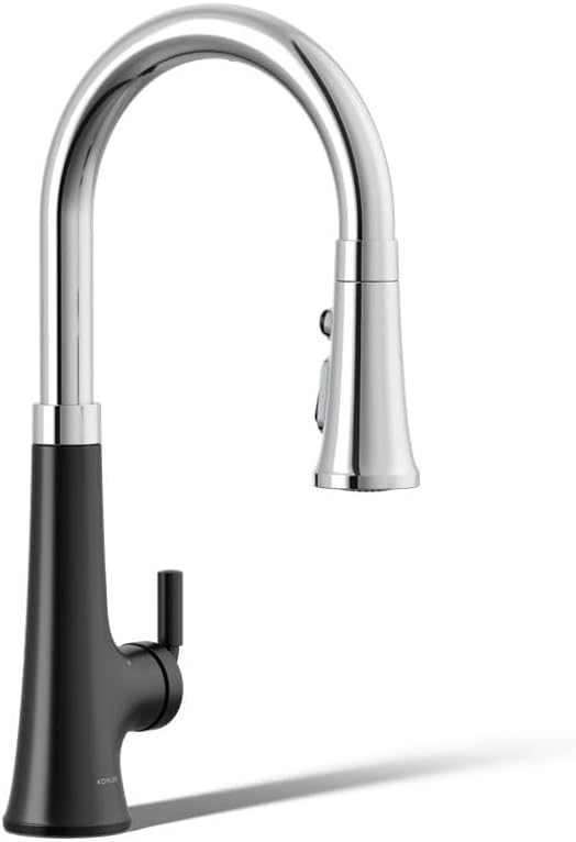 Upgrade your kitchen with the KOHLER Tone K-23766-CBL — a touchless pull-down faucet that pairs mid-century style with modern convenience. Response sensor technology delivers hands-free water activation in milliseconds, reducing cross-contamination during food prep and cleanup. The three-function sprayhead shifts easily between an aerated stream for filling, a Sweep® spray for powerful rinsing, and Boost mode for 30% faster filling of large pots. A MasterClean™ sprayface resists mineral buildup for effortless maintenance, and DockNetik® magnetic docking keeps the sprayhead securely aligned when not in use.